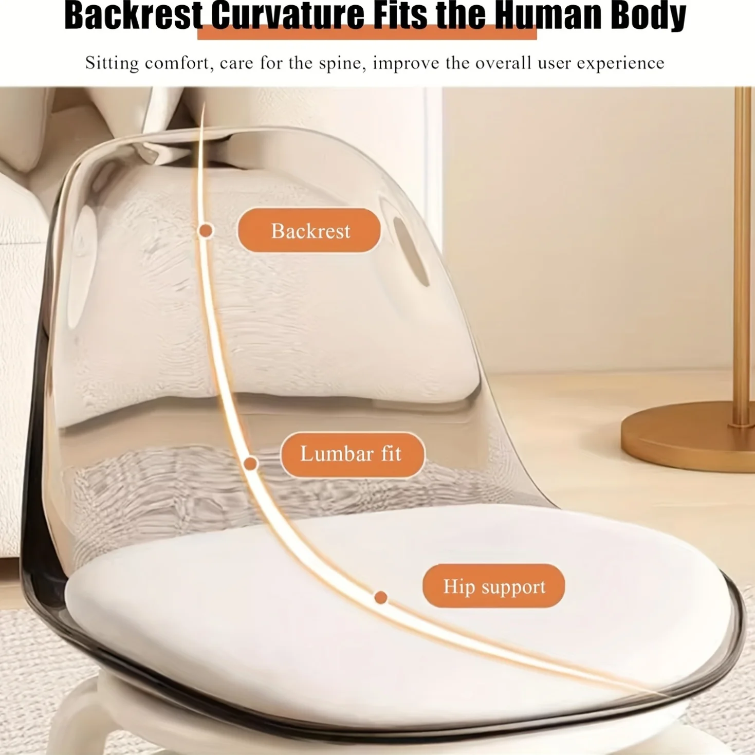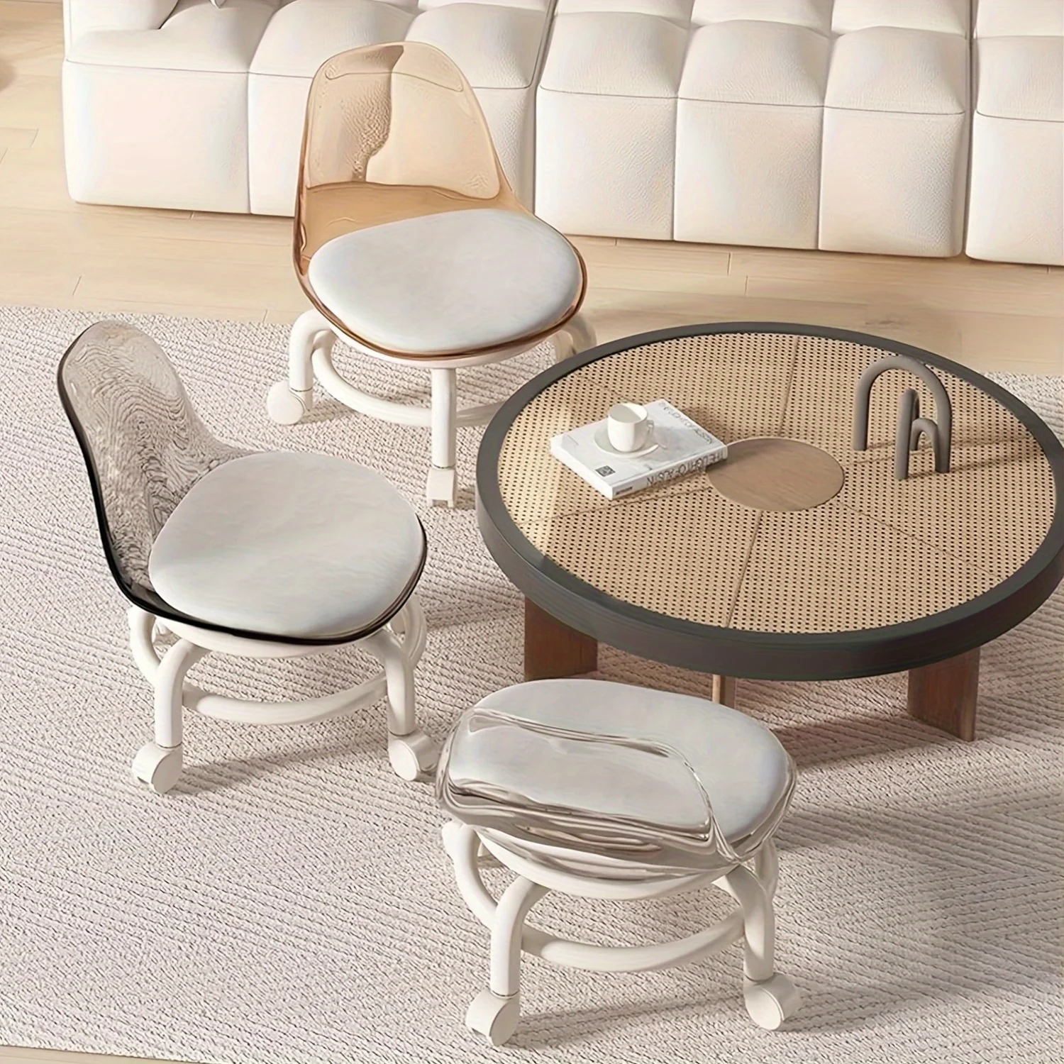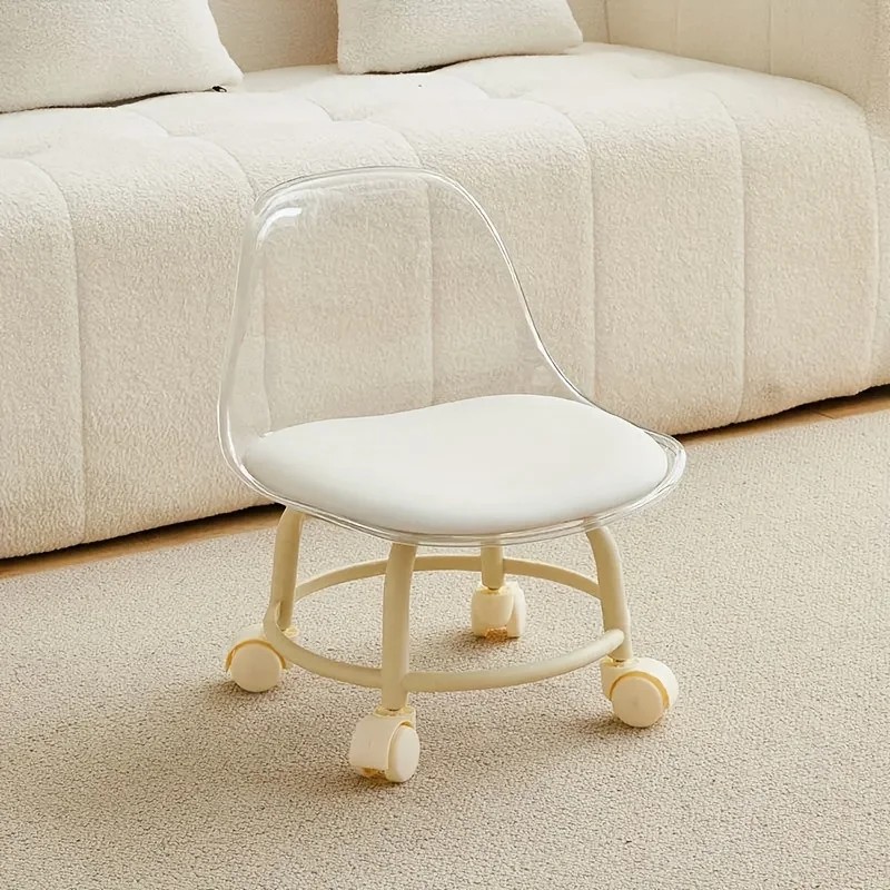 Small Stool with Universal Wheels, Acrylic Roller Stool, Transparent Stool with Wheels, Backrest, Compact and Portable